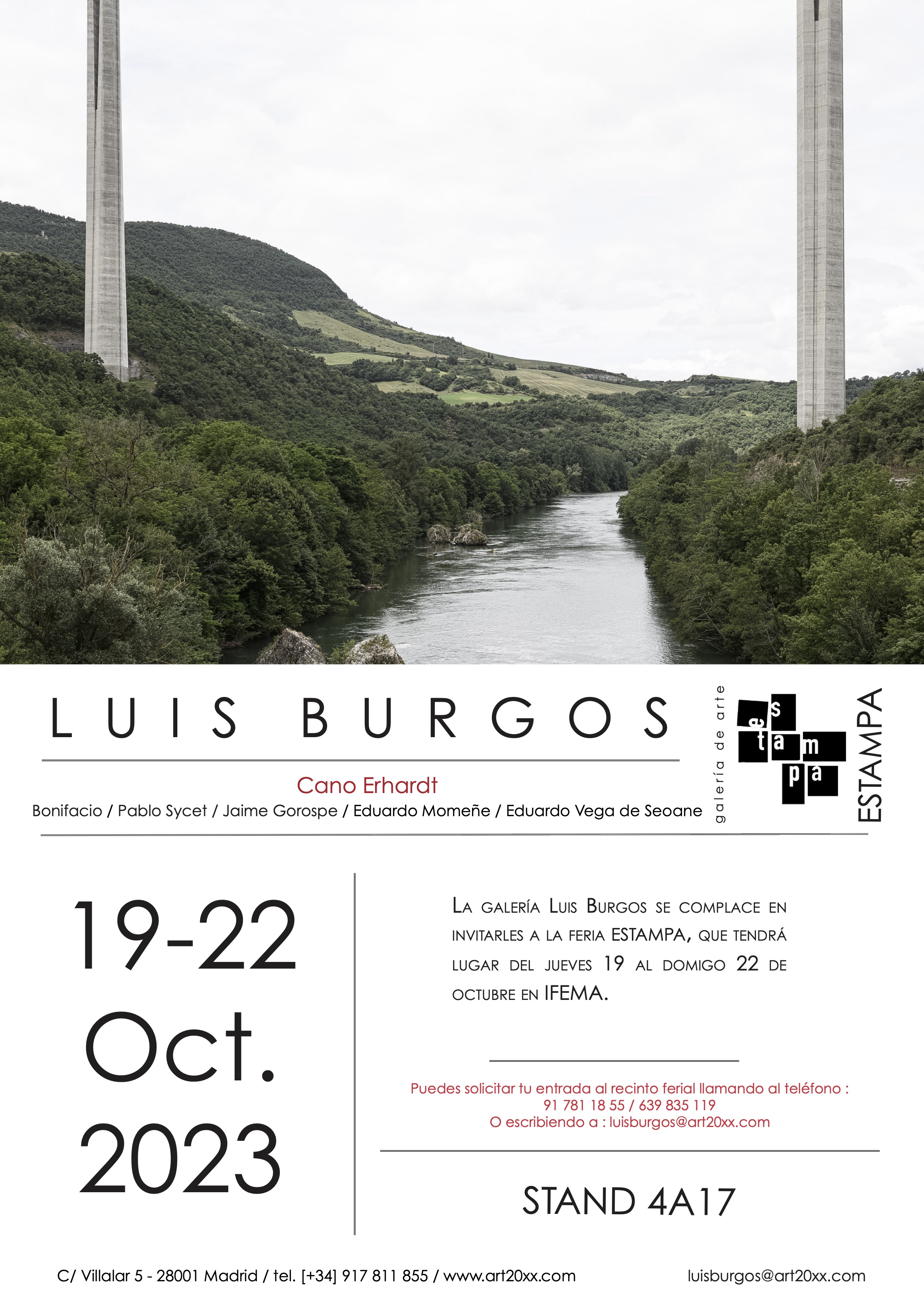 Expongo de la mano de Luis Burgos en Estampa en el IFEMA de Madrid, junto con José Angel Lasa, Montserrat Gómez Osuna, Tony Squance y Eduardo Vega de Seoane.