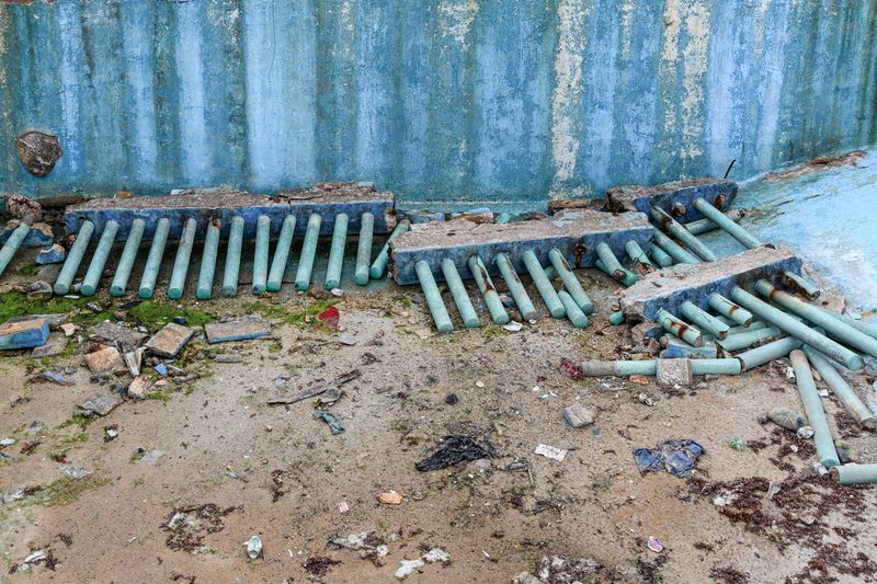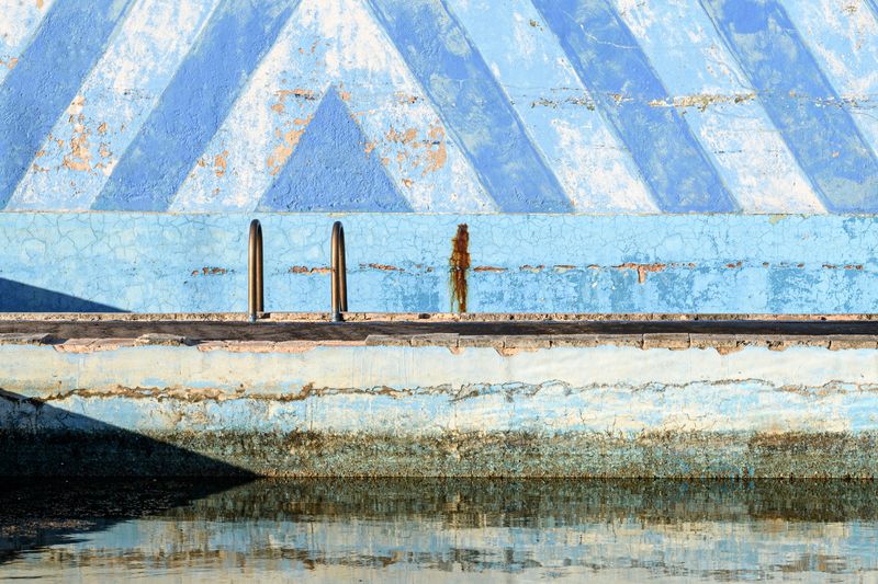 Estas piscinas se hallan en un barrio de La Habana. Su decrepitud sobrecoge. En su mayoría, han sido víctimas de la acción de la naturaleza. Sobre todo, de los embates del mar con el que lindan. No es fácil comprender por qué las construyeron allí y así, vulnerables ante enemigo tan formidable y pertinaz. Luego pasaron muchas cosas. Y sufrieron del olvido de una sociedad que ni quería ni podía permitirse repararlas y mantenerlas. Sus restos encarnan ese futuro que iba a ser y no fue. Son el espejo de tantas promesas jamás cumplidas. Y también de tantas realidades y proyectos que se mataron o se dejaron morir.